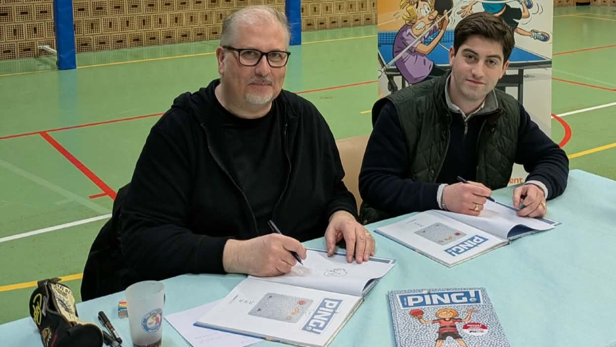 La sortie du nouveau tome a d’ailleurs donné lieu à une séance de dédicaces au club, qui a rassemblé près d’une centaine de personnes, licenciés comme curieux venus découvrir le projet. Au-delà du livre, la BD devient ainsi un autre moyen de faire connaître la discipline. « Ça peut donner envie de pousser la porte d’un gymnase« , estime Bertrand Vanhersel. « Le ping, c’est un sport où chacun peut trouver sa place. » Entre humour, pédagogie et immersion dans la vie des clubs, PING propose finalement une autre façon de raconter le tennis de table. Une manière légère, mais fidèle, de montrer que derrière une simple balle blanche se cache un sport exigeant et profondément humain.