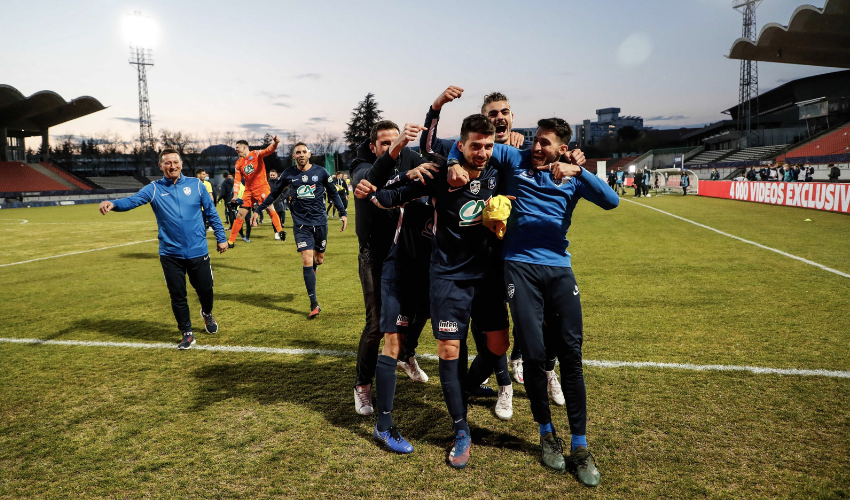 Quand il songe à la demi-finale de la Coupe de France, Mathieu Guillaud a déjà des frissons. Il sait, lui le joueur amateur évoluant en quatrième division, que son équipe, le GFA Rumilly-Vallières, va forcément affronter un ogre de Ligue 1 et ses joueurs de haut niveau : Montpellier, Monaco ou le Paris Saint-Germain. « C’est une chance exceptionnelle de se mesurer à ces équipes. On va voir ce qui nous sépare d’elles. » Le milieu de terrain haut-savoyard (31 ans), buteur au tour précédent face à Toulouse (2-0), s’est prêté au jeu et évoque tour à tour les grands noms du football français qui se dressent face au petit poucet.