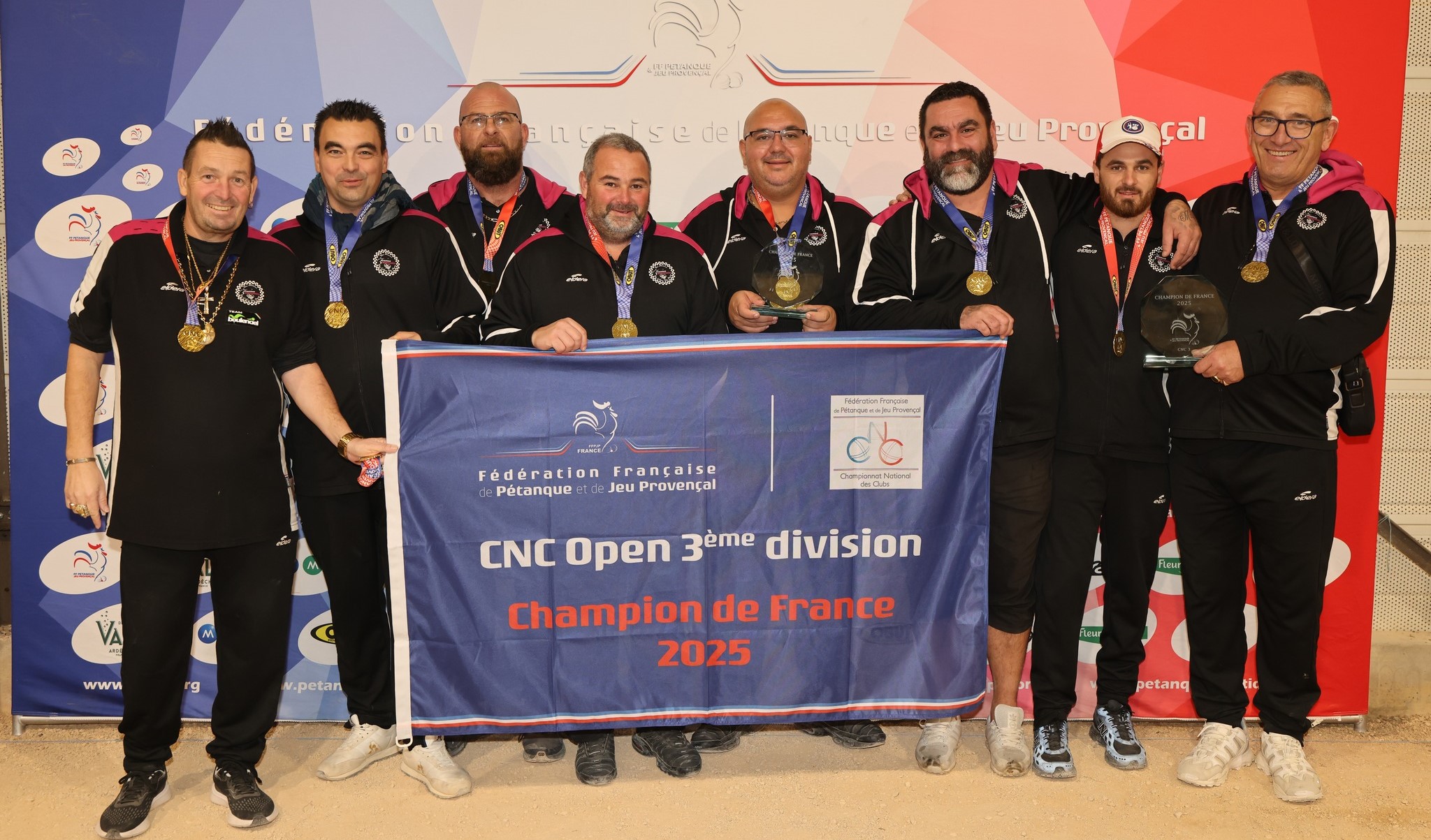 Romans, encore champion de France ! Ce dimanche 23 novembre, la Pétanque Romanaise vient de signer une énorme performance : remporter le titre en CNC 3 (Championnat National de 3e division). Au fin fond du Jura, à Mont-sous-Vaudrey, les Drômois ont battu Lommes en finale, pour boucler leur saison invaincus. « Et dire qu’il y a neuf ans, on était en 9e division ! », souriait avant la finale Stéphane Garin, pilier de la Pétanque Romanaise et seul rescapé de l’équipe des débuts.